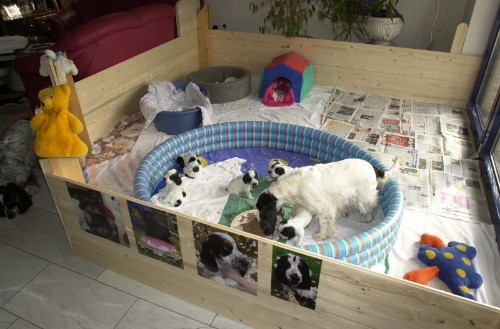 Die Welpen sind mit der Mama in den Wohnzimmerauslauf umgezogen.